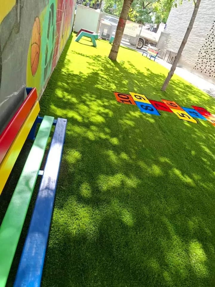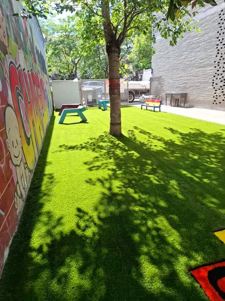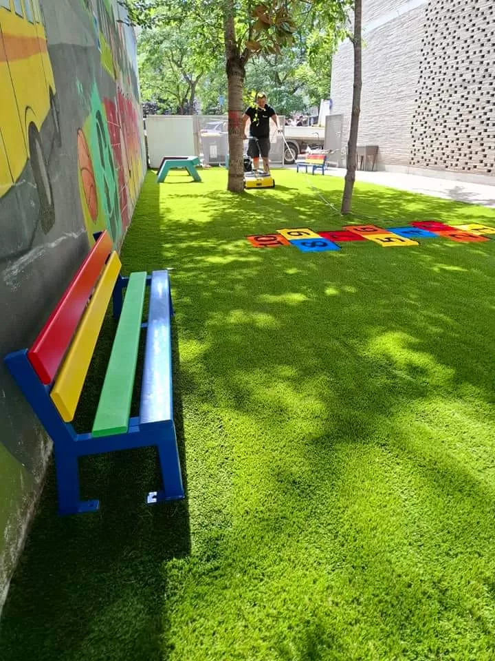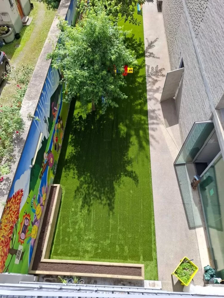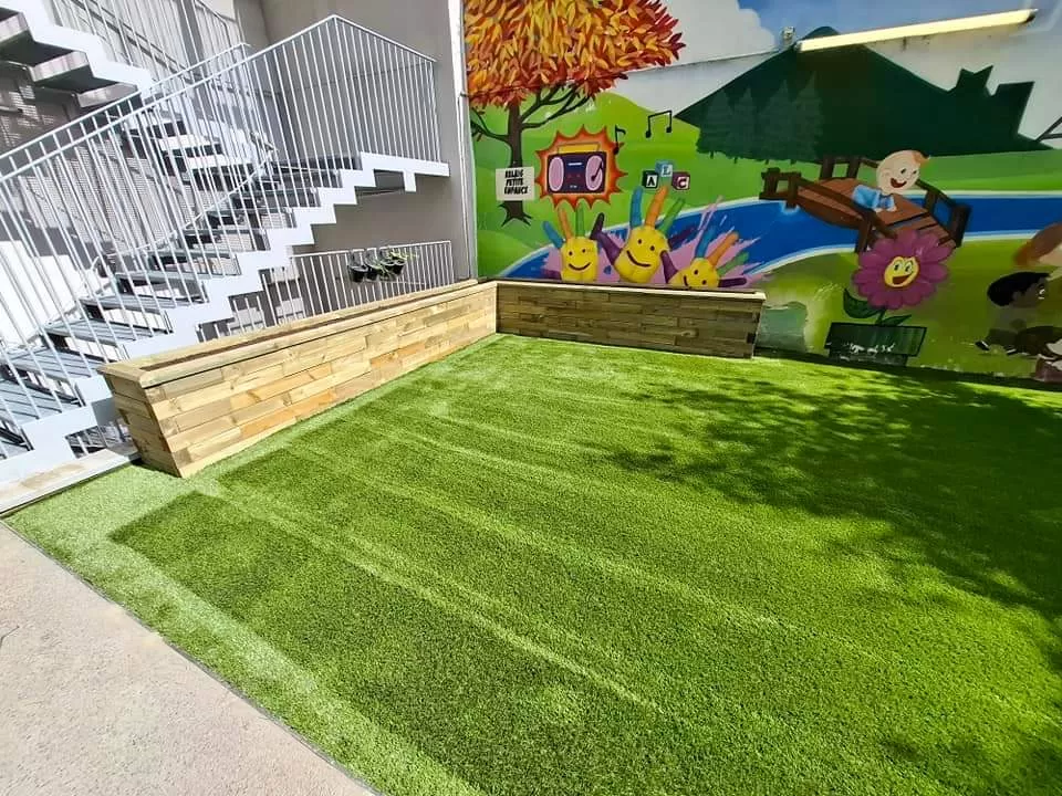 Mon extérieur est intervenu pour l'Aménagement d'un extérieur en synthétique avec pose d'une jardinière dans une cour de jeux pour enfants à Saint-Etienne.