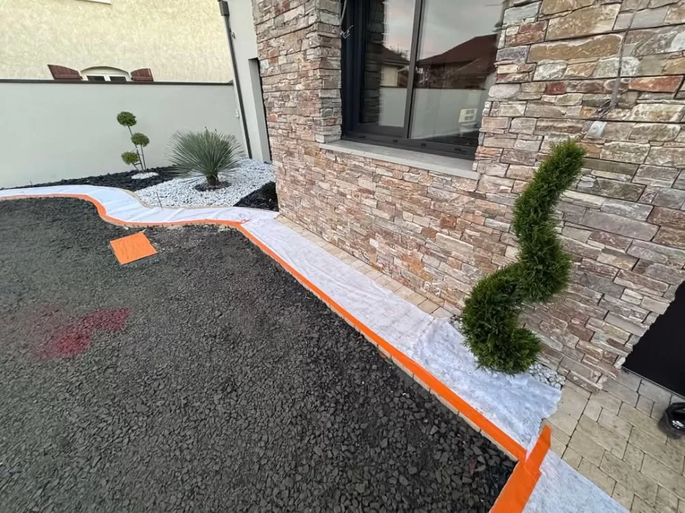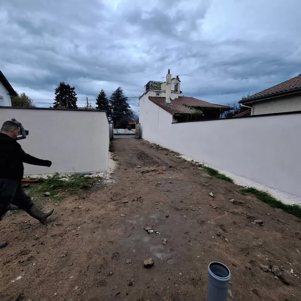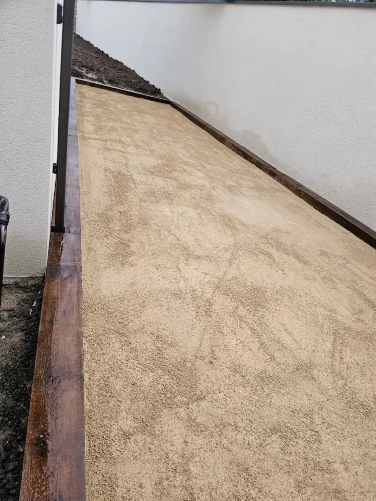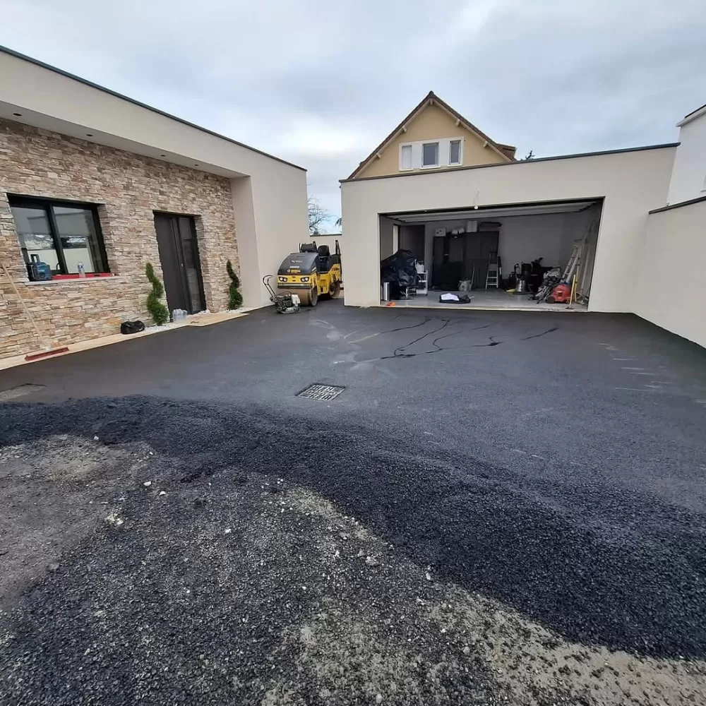 Votre terrassier à Saint-Etienne à effectué le décaissement, la pose de géotextiles avec structure en 0,60 de carrières et nivelage en 31,5 de carrières avec compactage ainsi que la pose de caniveaux grilles suivi de l'application d'un enrobé noir 130kg/m² .Nous sommes aussi intervenu dans la réalisation d'un terrain de pétanque mais aussi dans la pose de pavés.