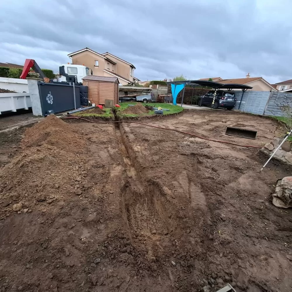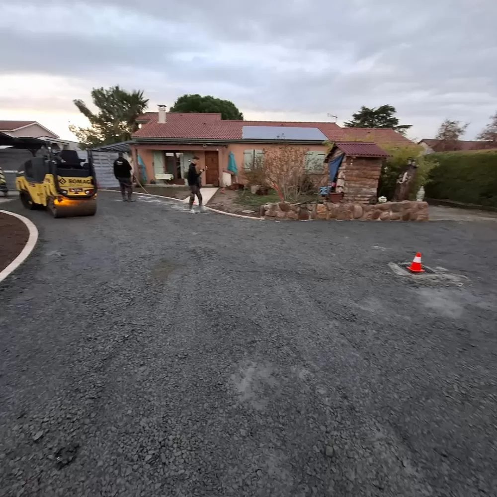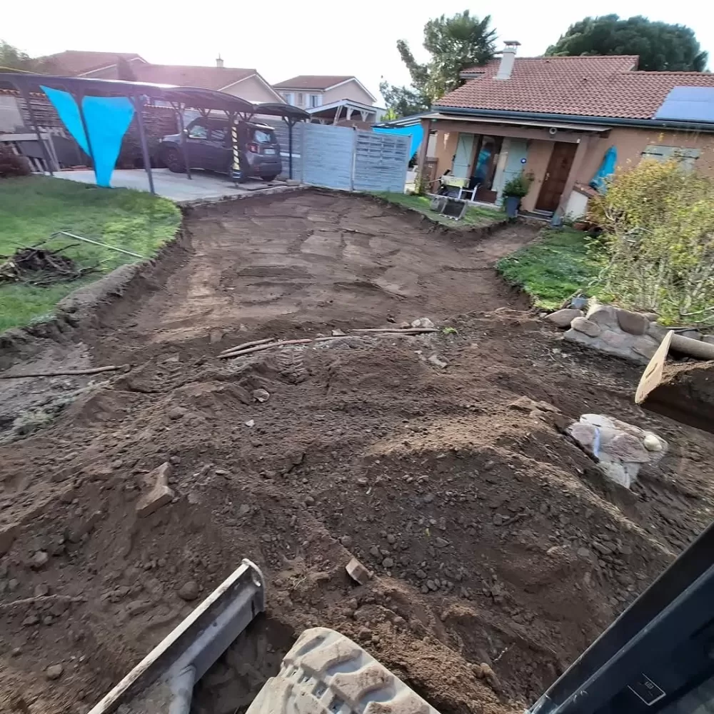 Votre terrassier à Andrézieux-Bouthéon à effectué le décaissement , la pose d'un géotextile avec structure en 0,60 de carrière et nivelage en 31,5 de carrière avec compactage en attendant l'application d'enrobé. Nous avons aussi réalisé la pose de pavés tépia, la création de grille EP 50/50 mais aussi la pose de gaines aiguillées pour l'éclairages ainsi que la remise des terres au propre.