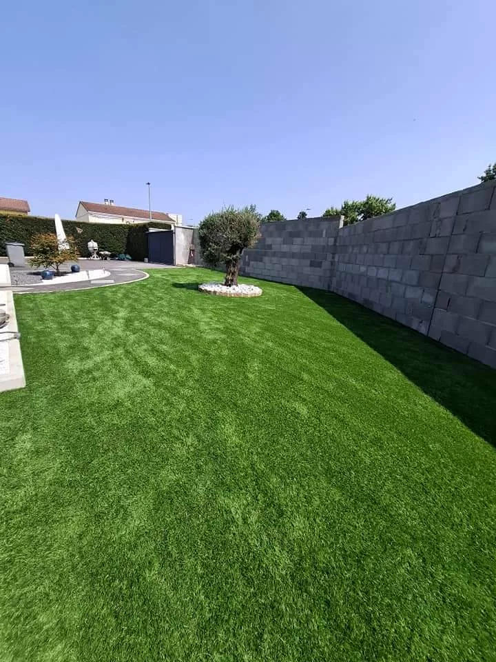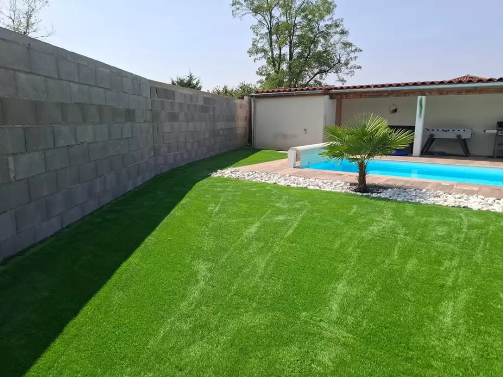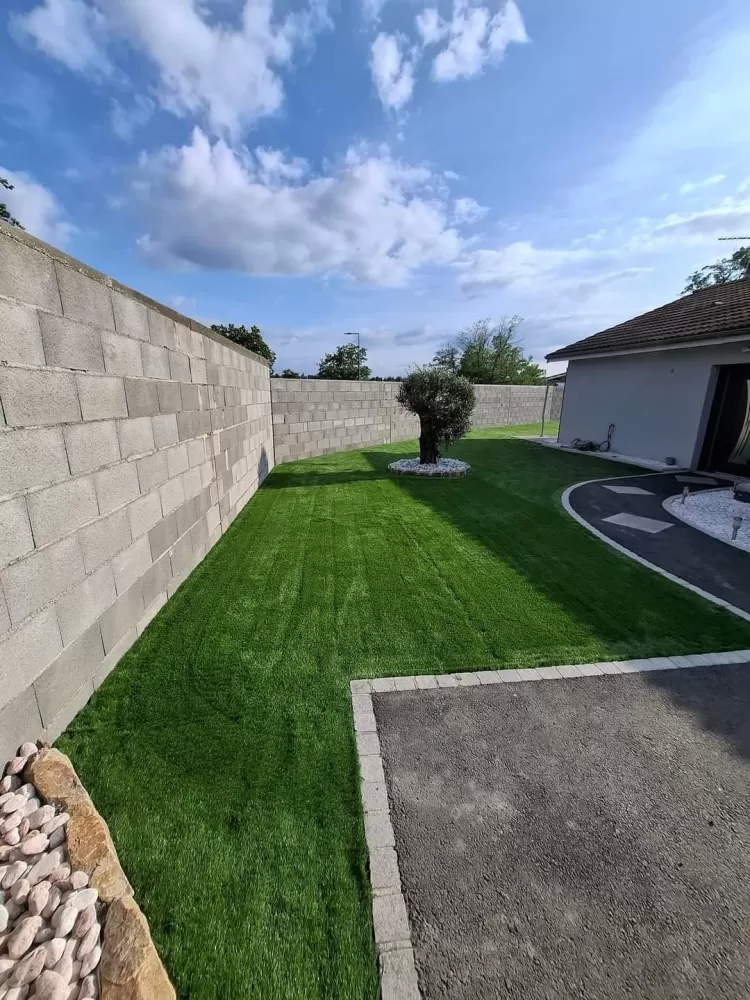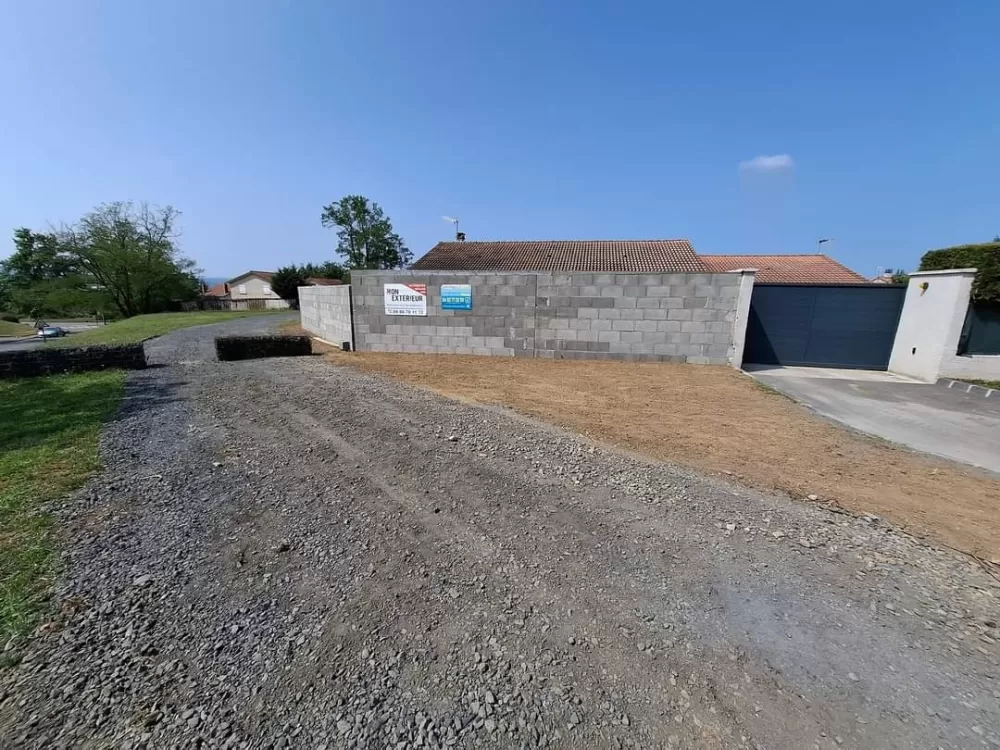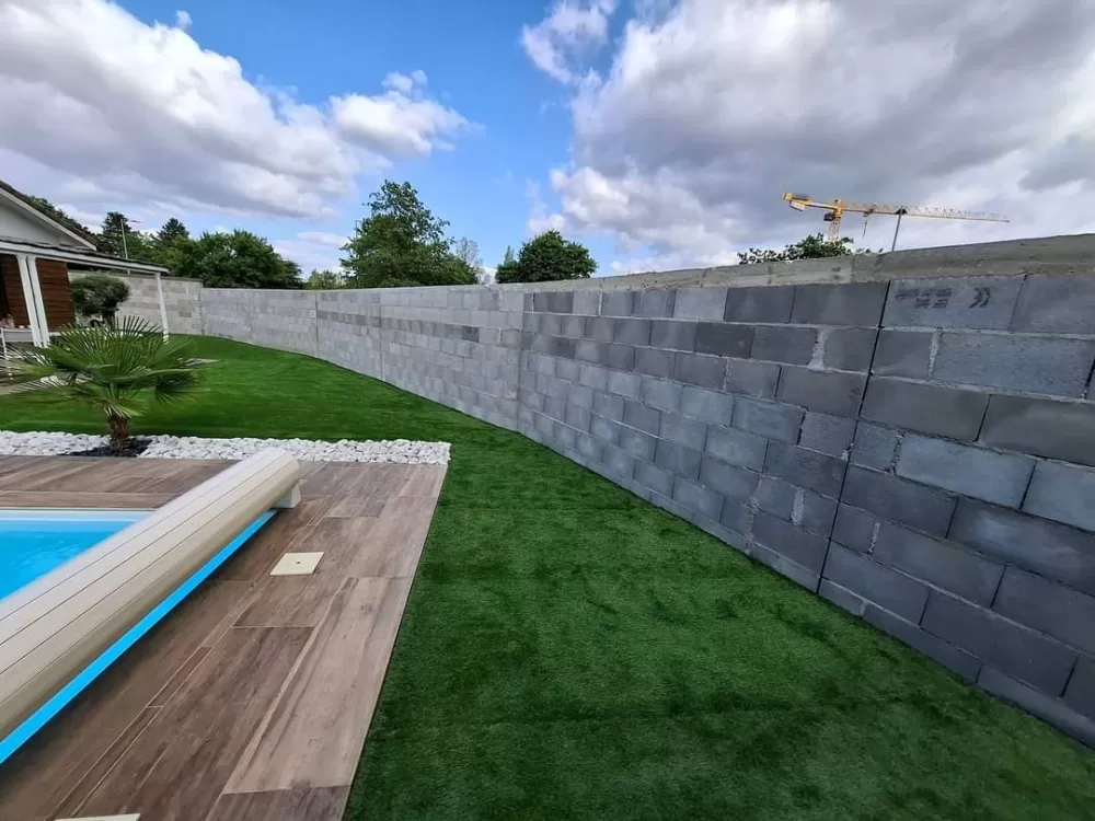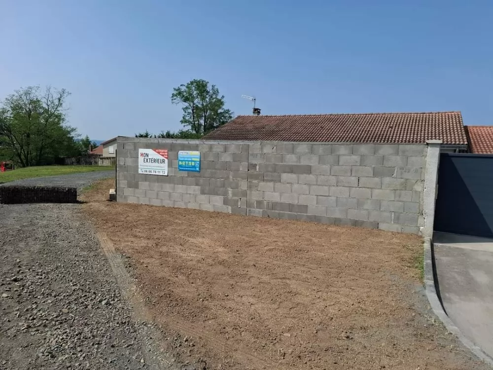 Mon extérieur est intervenu pour la création d'un mur de clôture en parpaing et l'installation d'un gazon en synthétique sur stabilisé à Andrézieux .