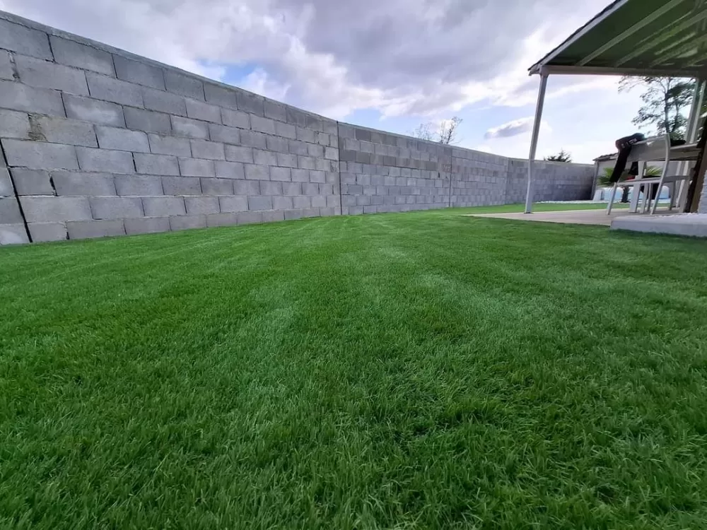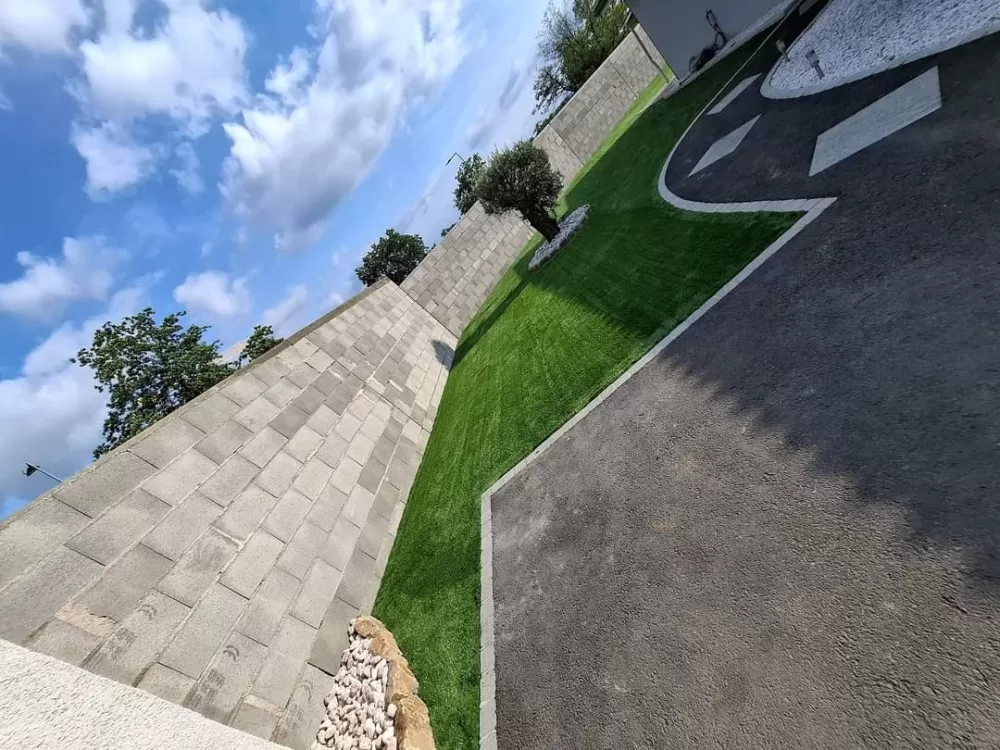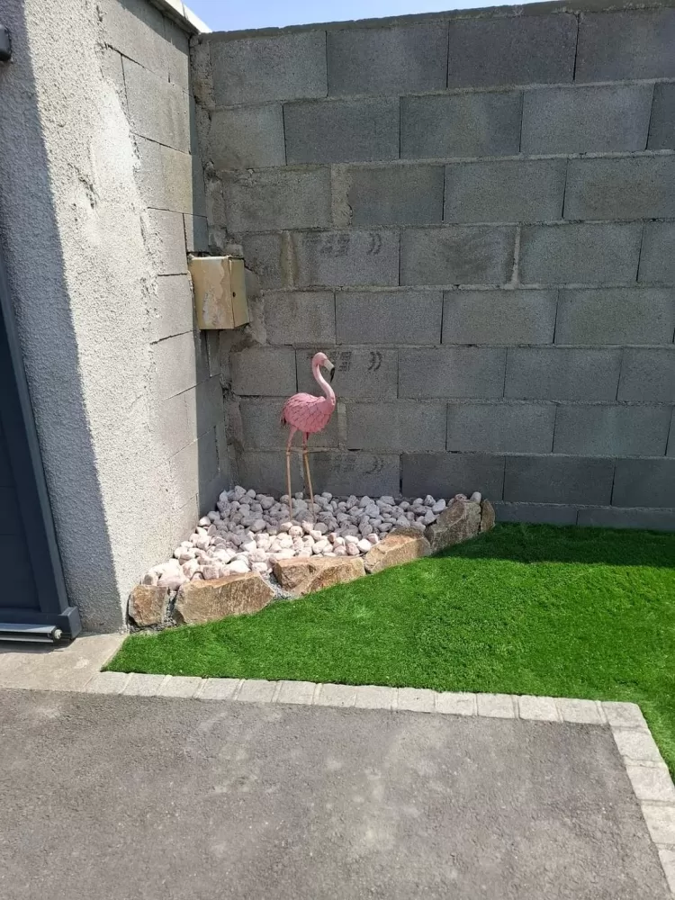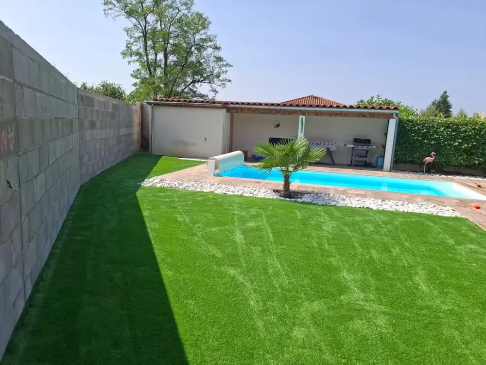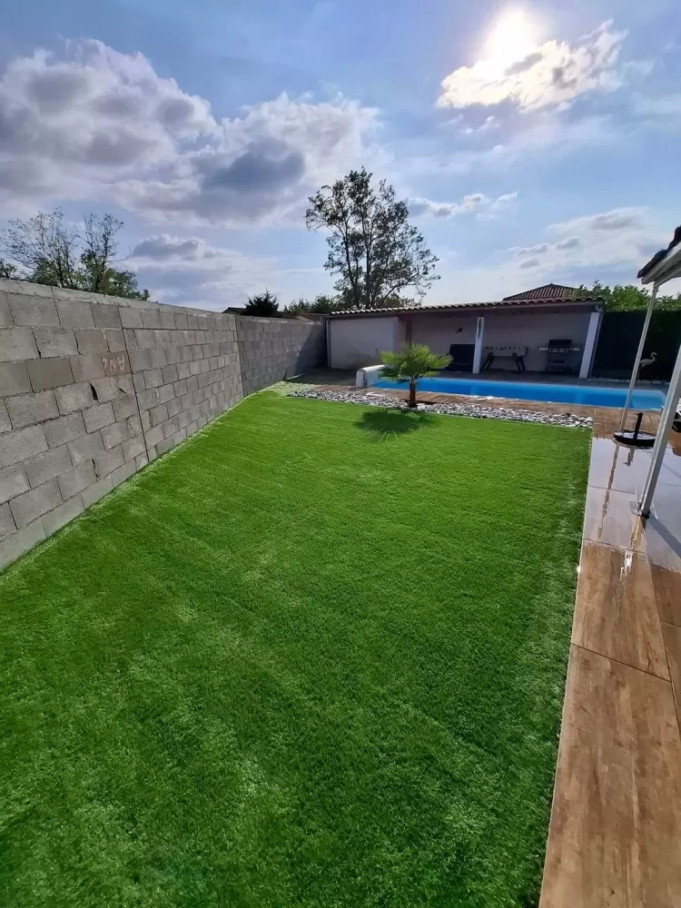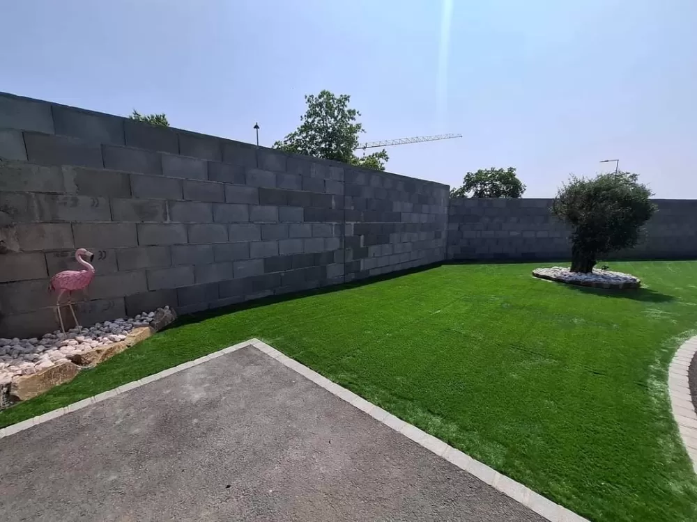 Mon extérieur est intervenu pour la création d'un mur de clôture en parpaing et l'installation d'un gazon en synthétique sur stabilisé à Andrézieux .