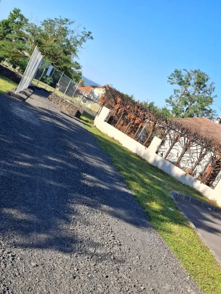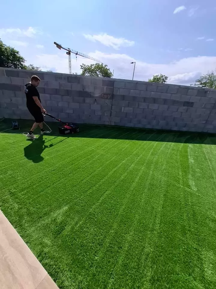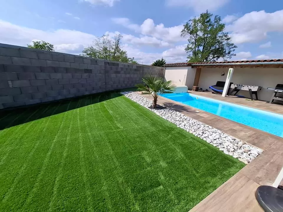 Nous avons terminé le chantier par la pose d 'un gazon en synthétique sur stabilisé .