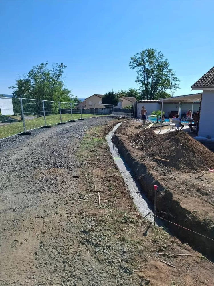Votre maçon est intervenu chez un particulier sur Andrézieux suite à un incendie. Tout d'abord nous avons procédé à l'abattage, le dessouchage et à l''évacuation d'une haie, ensuite destruction de l'ancien muret avec son évacuation pour laisser place à l'ouverture des fouilles avec ferraillage et coulage en béton de celle-ci pour procéder à l'élévation d'un mur en parpaing.