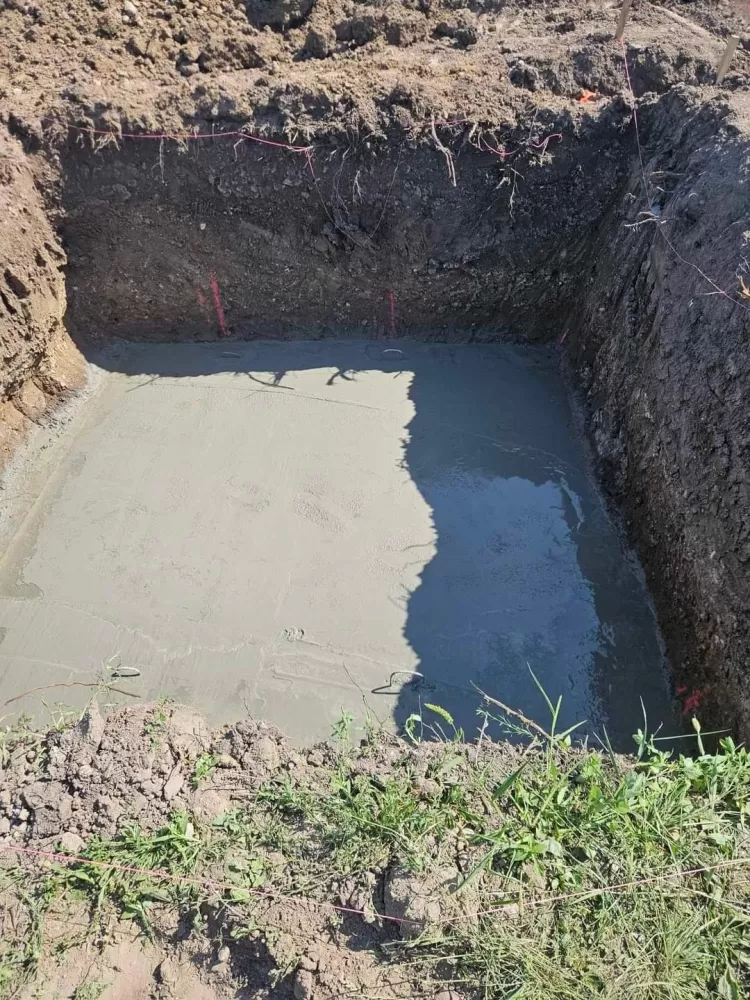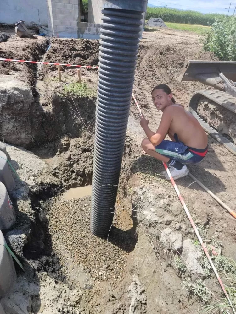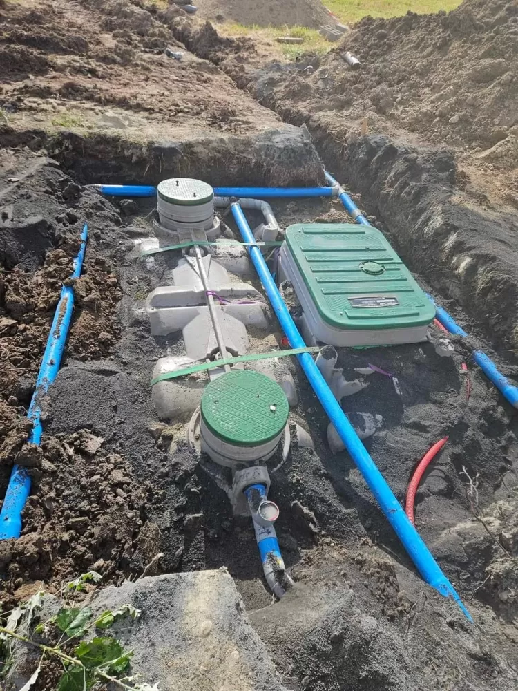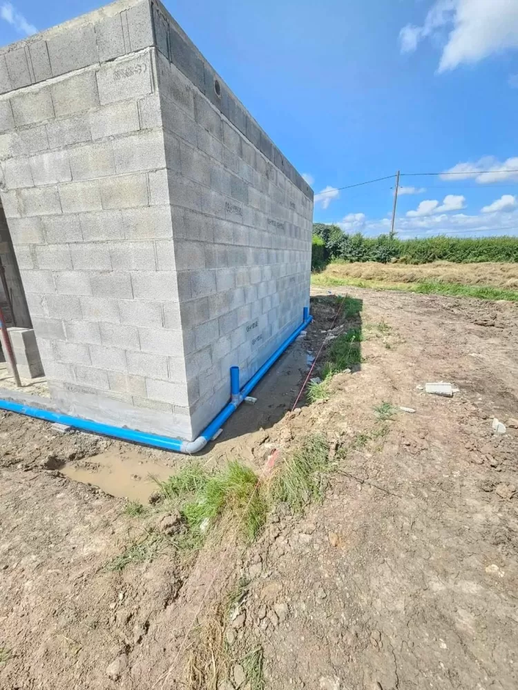 Votre terrassier à Sury le Comtal à effectué le terrassement puis à coulé une dalle béton afin de pouvoir poser et installer la fosse septique ECOFLO 6EH avec raccordement eaux usées et eaux pluviales.