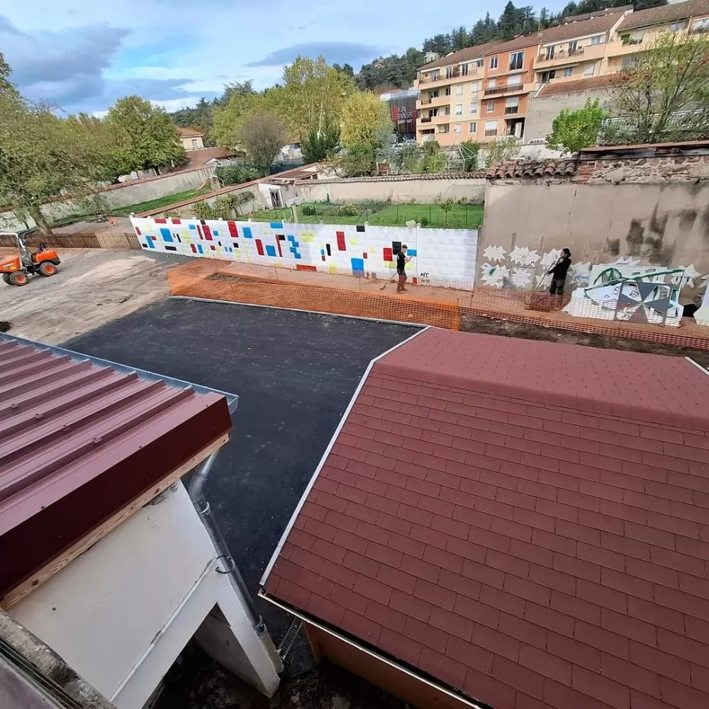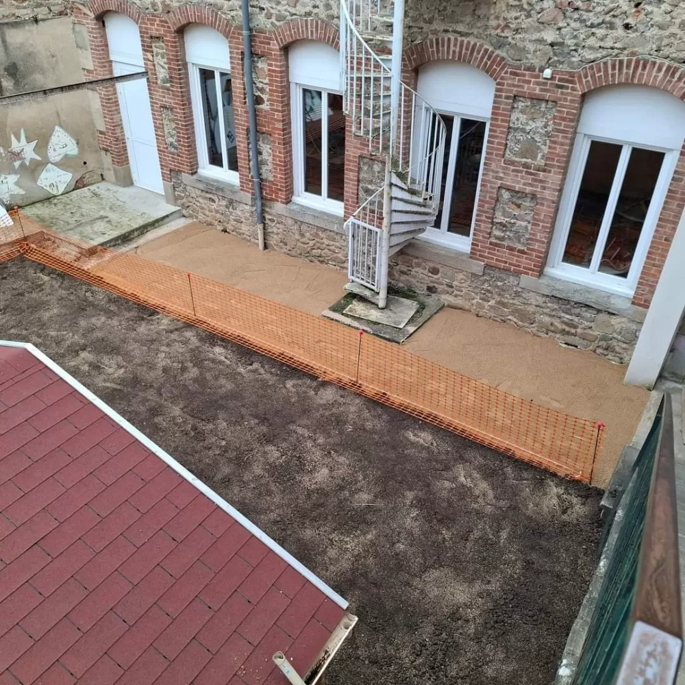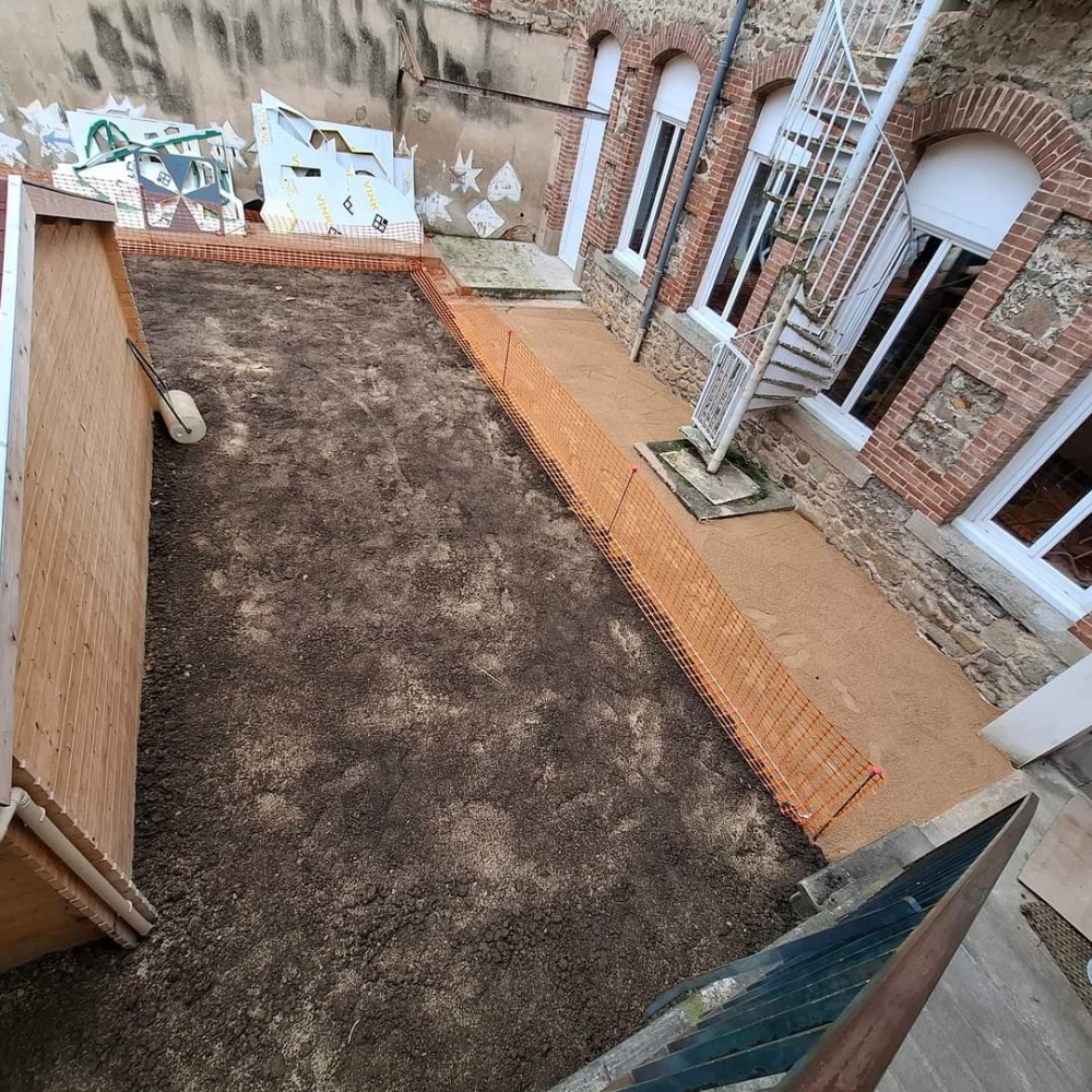 Votre terrassier à St Just St Rambert à effectué pour une école la remise au propre d'un terrain avec l'apport et le nivelage de terre végétale avec la plantation d'herbes de prairie. La mise en place du balisage du chantier sera laissé en place jusqu'à la pousse intégrale de celle-ci. La création du chemin piéton aura nécessiter un terrassement avec la pose d'un géotextile, d'un 31,5 avec compactage et pour finir l'application d'une finition en stabilisé ocre
