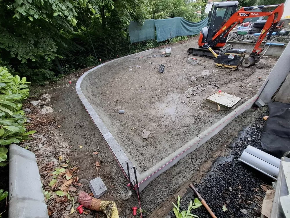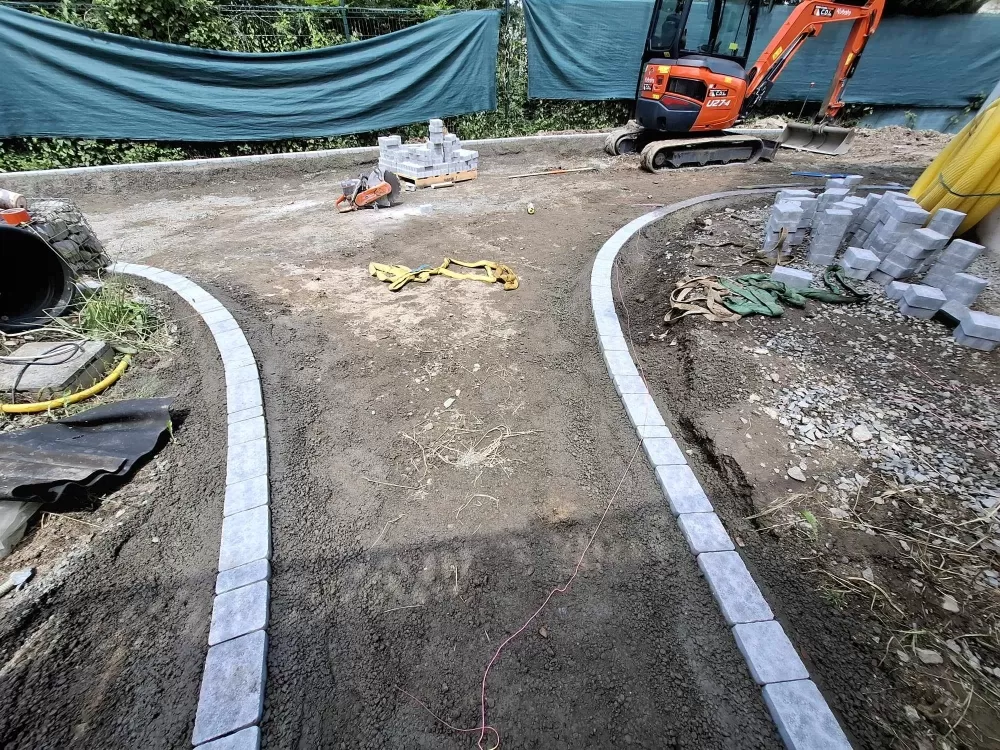 Votre maçon à Saint-Jean-Bonnefonds est intervenu dans la pose de bordure en pavé pour la retenue d'enrobé.