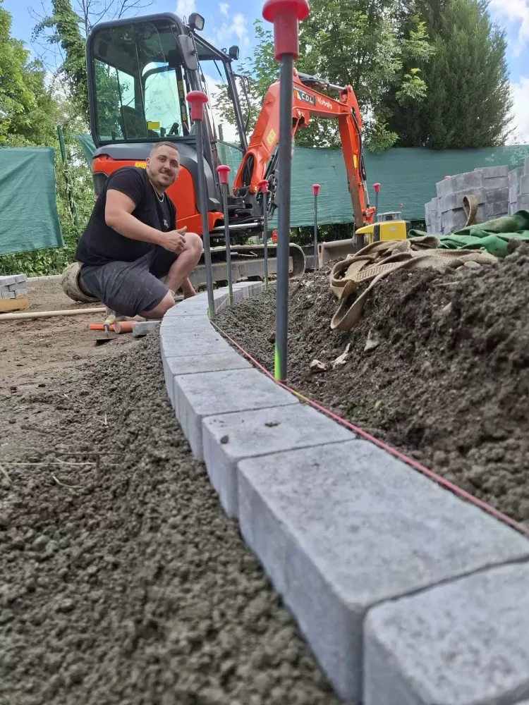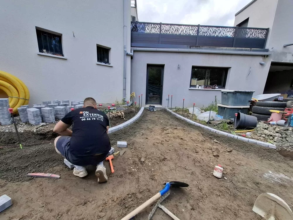 Mon extérieur est intervenu pour la pose de bordure en pavé à Saint-Jean-Bonnefonds.