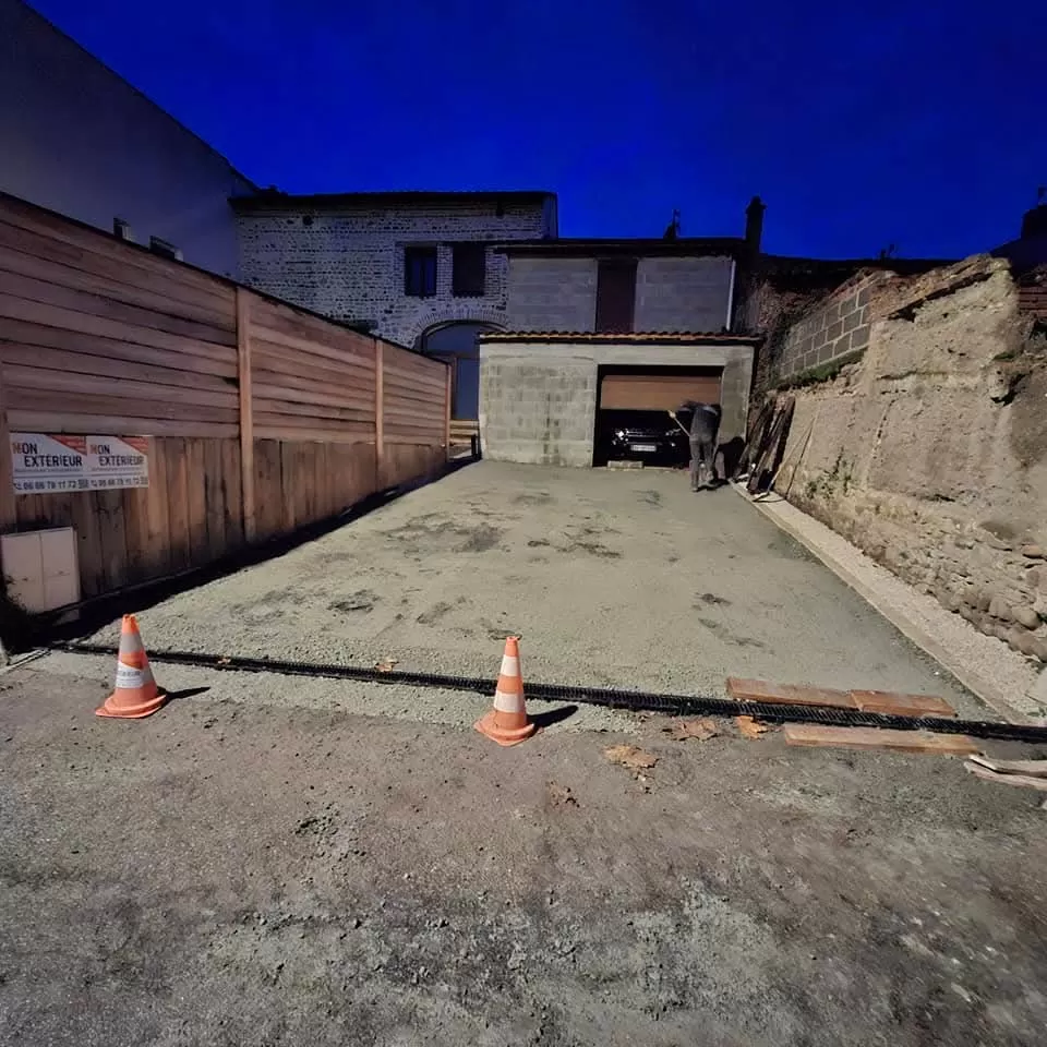 Votre terrassier à Sury le Comtal à effectué le terrassement de l'entrée d'un garage suivis de la pose d'un géotextile mais aussi d'un 0,60 de carrières pour la structure et d'un 31,5 de carrières pour le nivelage le tout avec compactage et Pour terminer l'application d'enrobé chaud noir manuel à été réalisé. La pose de caniveaux grilles fonte a aussi été exécuté.