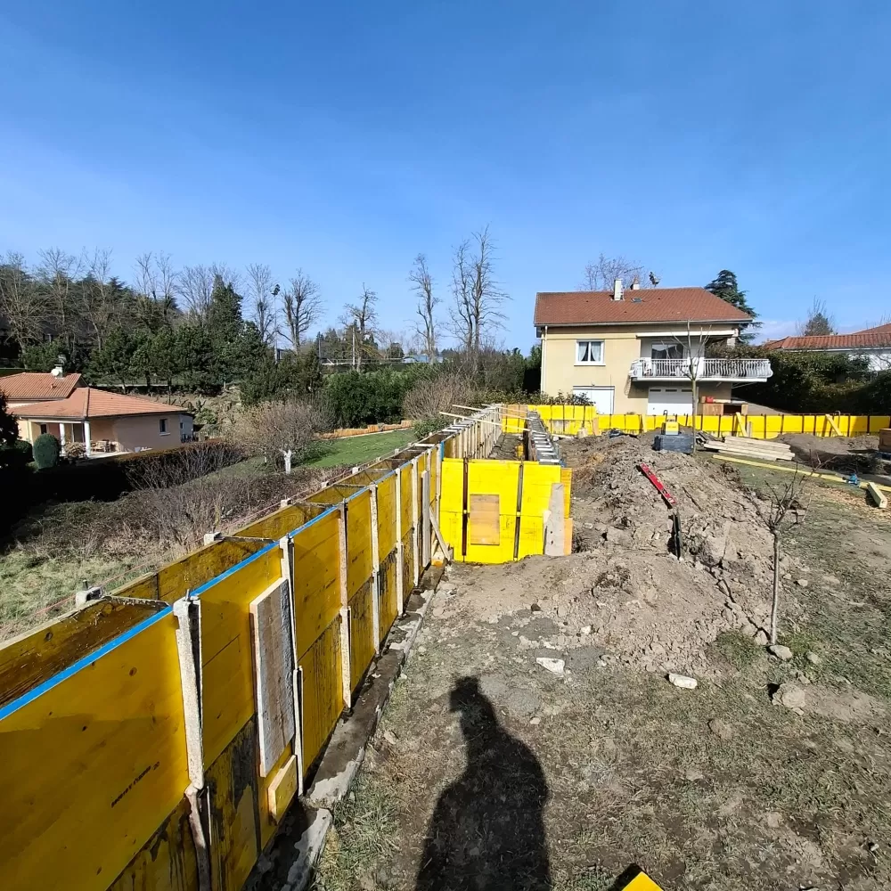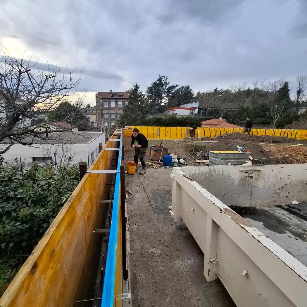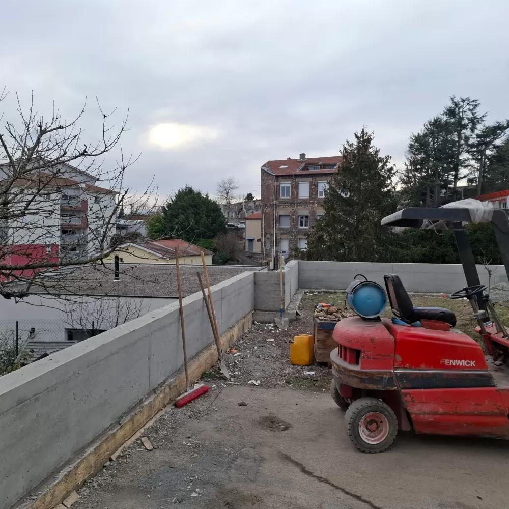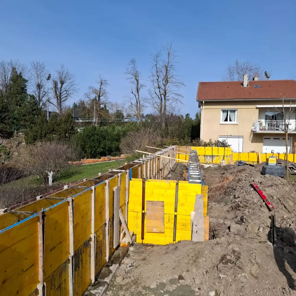 Votre maçon à Saint-Genest-Lerpt a effectué le coffrage et le coulage des ceintures en béton avec ferraillage 15/35 renforcé sur les murs existants en TOR de 12 ainsi que le scellement chimique