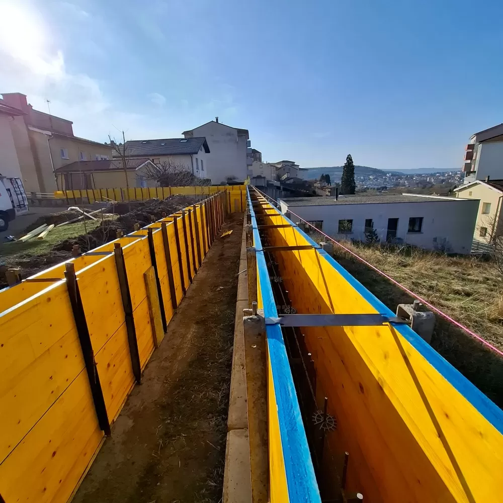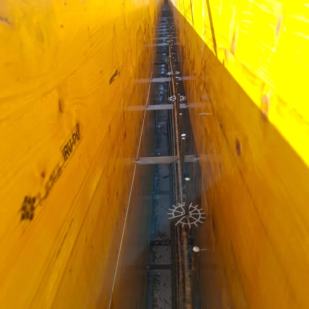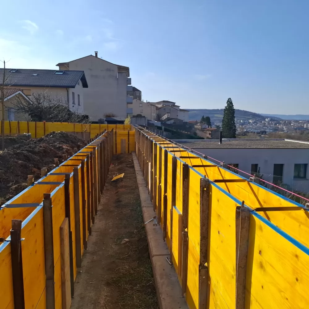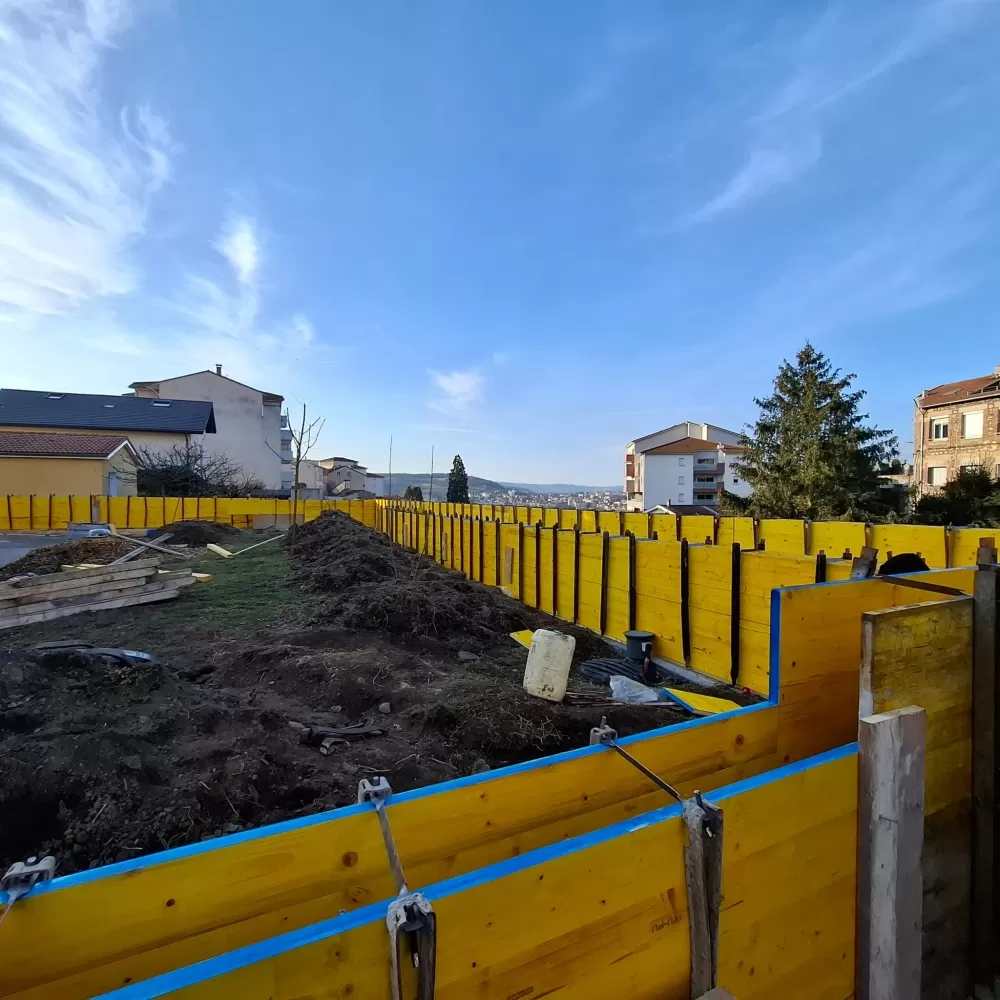 Votre maçon à Saint-Genest-Lerpt a effectué le coffrage et le coulage des ceintures en béton avec ferraillage 15/35 renforcé sur les murs existants en TOR de 12 ainsi que le scellement chimique