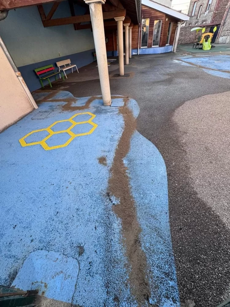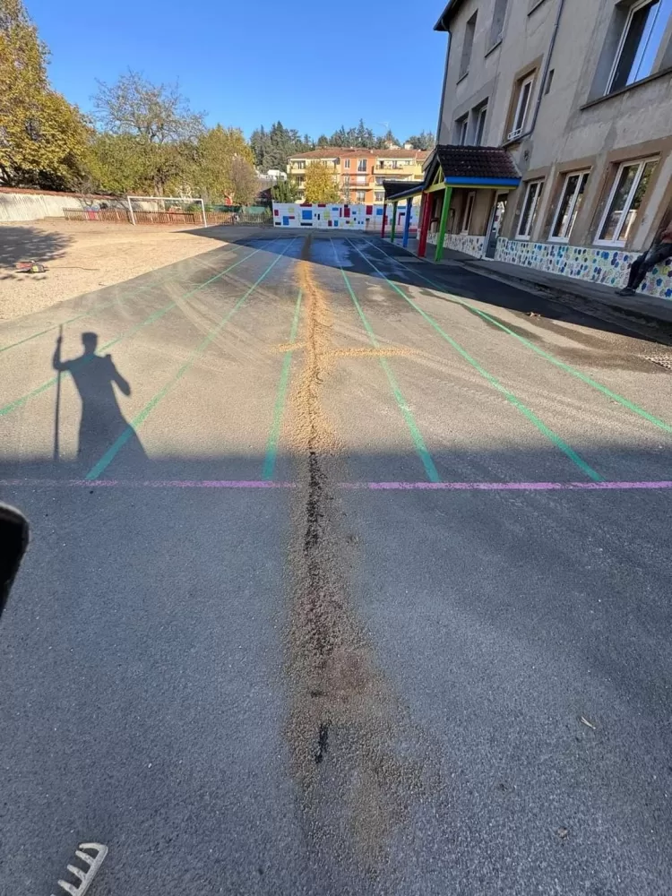 Votre Terrassier à St Just St Rambert a effectuer pour une école le traitement des fissures d'enrobés à l'aide d'émulsion , un nettoyage des fissures au karcher aura été fait avant toute application. Pour terminer un sablage sera réalisé sur les joints afin de les protéger mais aussi les chaussures des personnes circulant dans la cour de récréation.